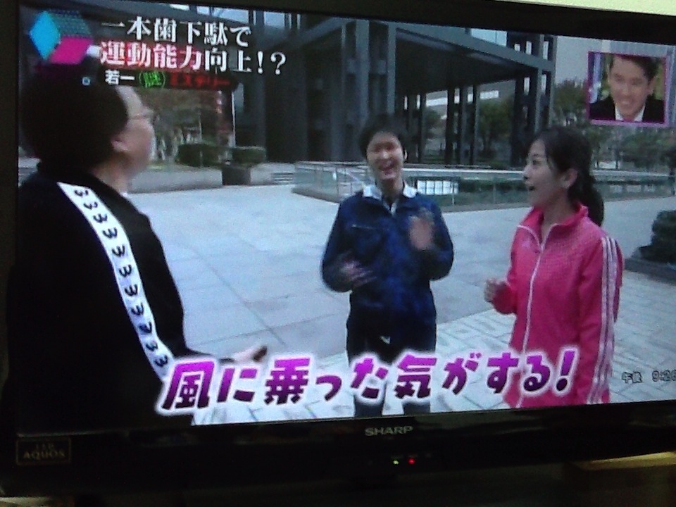 一本歯下駄のトレーニングと効果の実験を若一さん、中谷アナとさせていただきました。